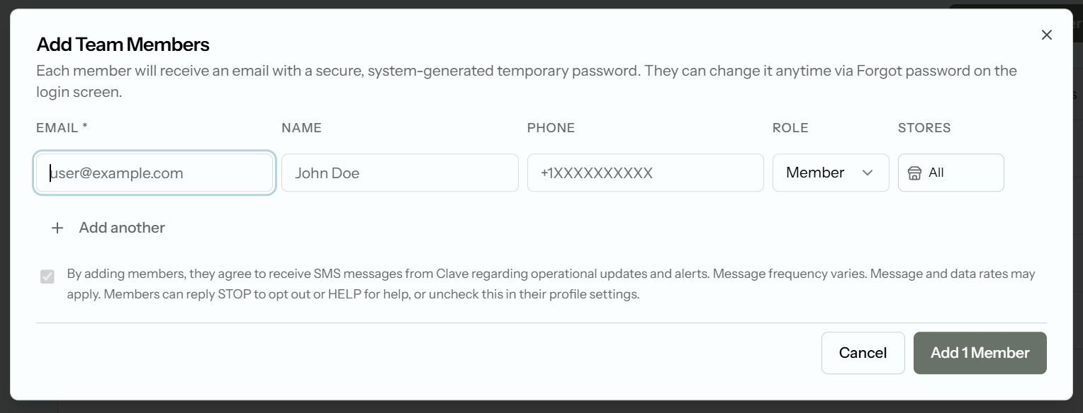 Clave may send you SMS messages related to your restaurant operations, including operational updates, sales summaries, performance alerts, and AI-generated insights. Clave is an enterprise platform — users cannot self-register. Access is granted exclusively through enterprise agreements, where an organization's admin receives an account and invites team members directly through the platform.